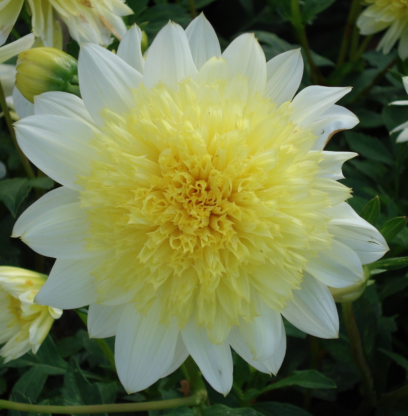 The upper case colour is the colour of the ray florets, the lower case is the colour of the cushion. Subtype (Lil.) indicates a lilliput dahlia, which is usually less than 15 inches (45cms) in height and with flowers not normally bigger than 2 inch diameter. (Dw.B.) indicates a dwarf bedding variety which does not normally exceed 24 inches (60cms) in height Use C. indicates suitable as a cut flower, ie it has long wiry stems. E. indictes the variety is suitable for exhibition purposes. G. indictes suitable for general garden use. P. indicates the variety is suitable for growing in pots or patio containers. Other anemone flowered dahlias