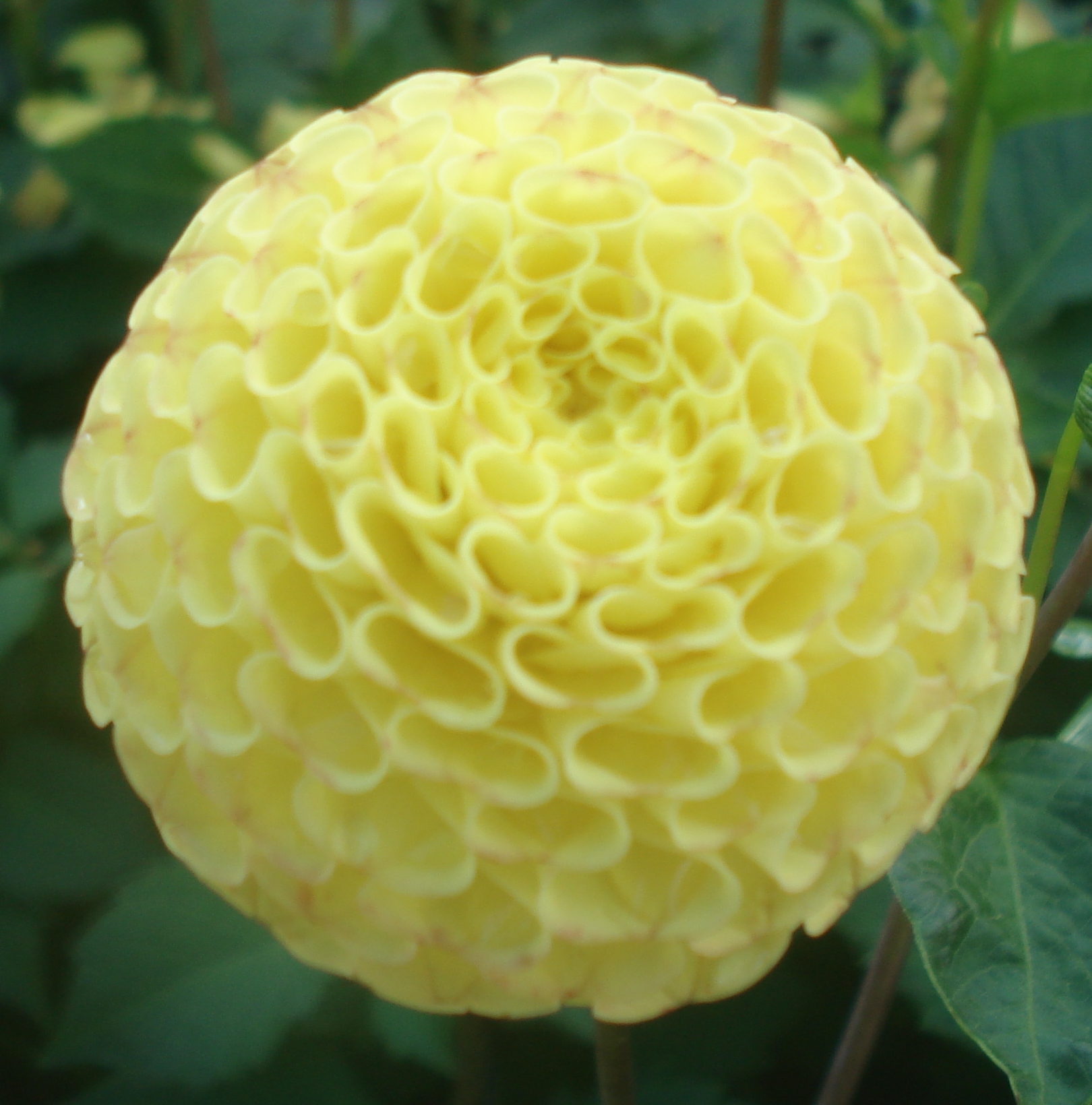 Pompon dahlias have fully double spherical blooms, with florets largely
