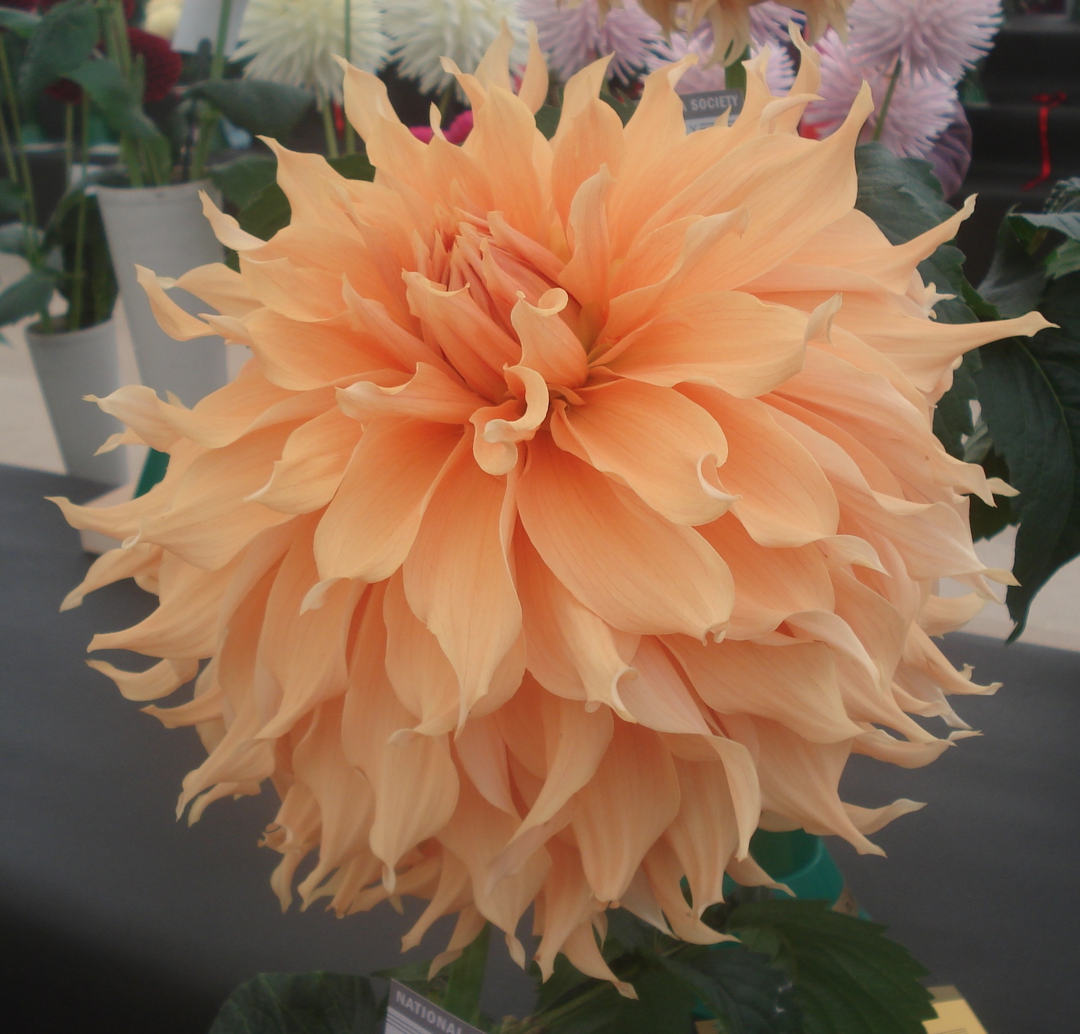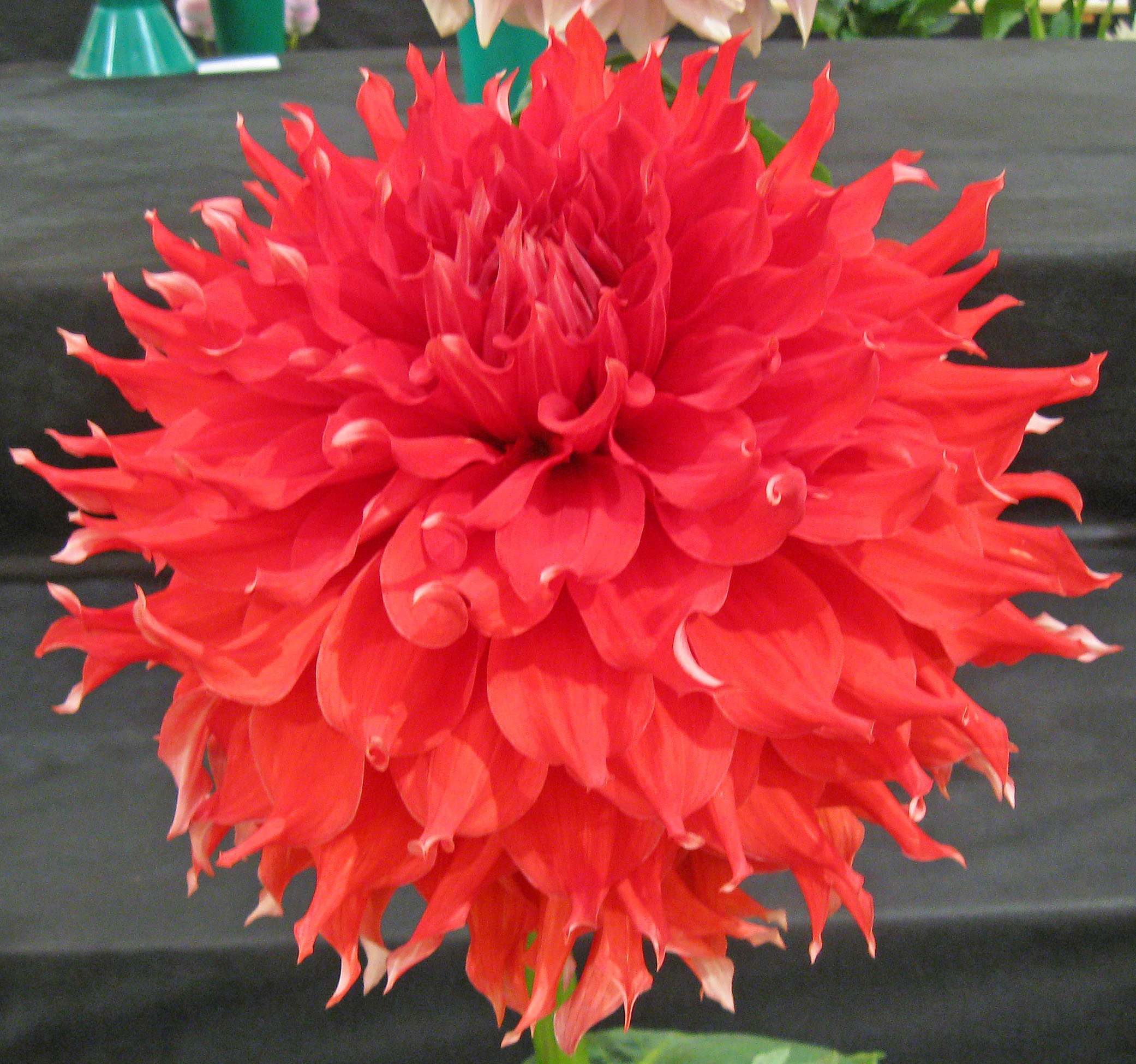 GIANT-FLOWERED DECORATIVE DAHLIASDecorative dahlias have fully double blooms showing no disc. The ray florets are generally broad and flat and may be involute for no more than 75% of their length (longitudinal axis) or slightly twisted, and bluntly pointed Giant-Flowered Decorative Dahlias have blooms usually over 10" (254mm) in diameter